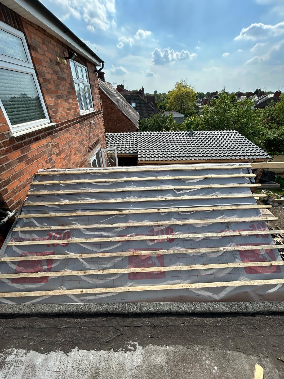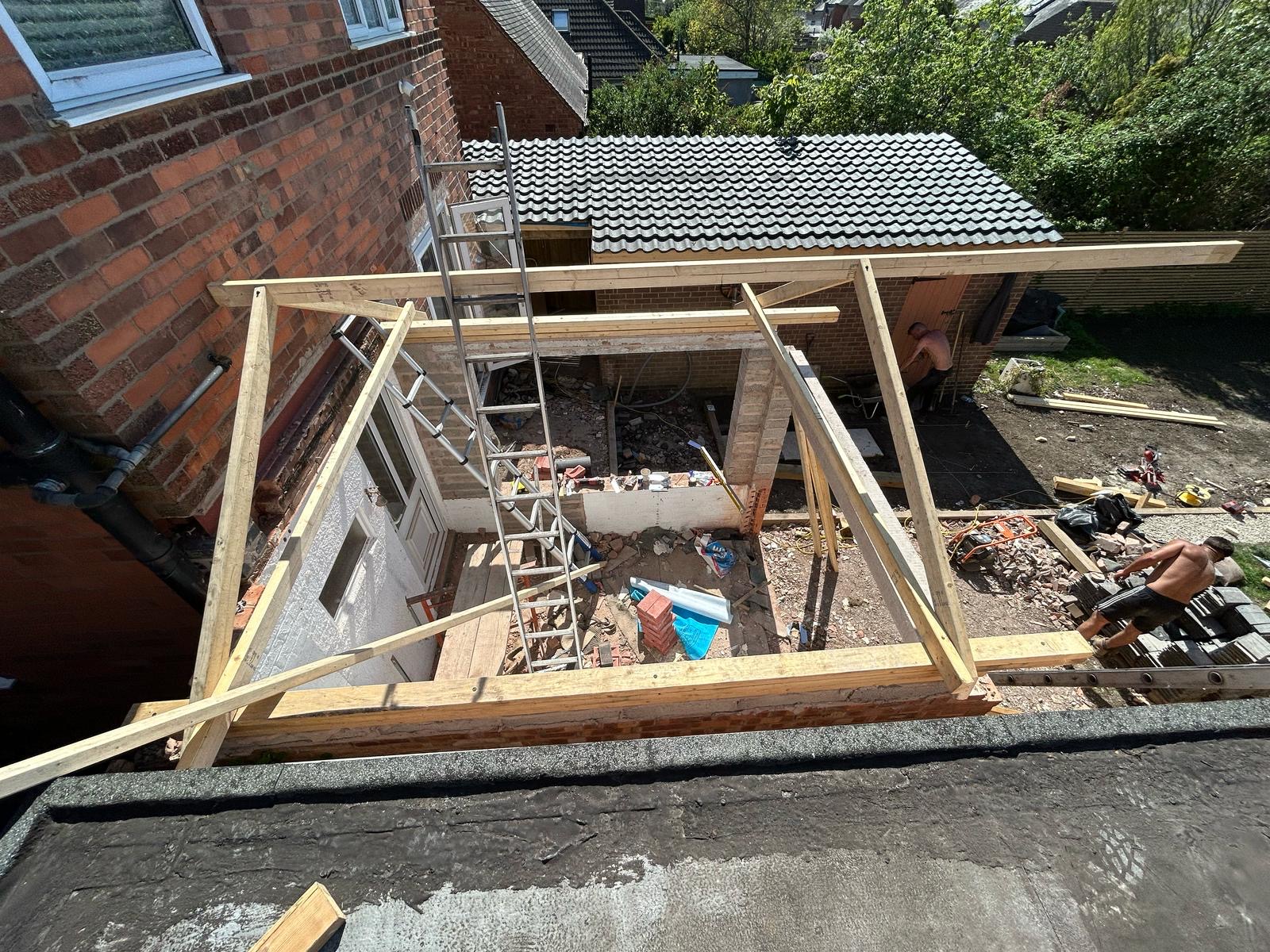 Pictured above is the construction of a new roof for one of our customers. Your new roof can be constructed completely to your desires. This means you can choose the tiles that you’d like, and in most cases, even the shape of your roof. All of this is discussed at your free consultation among booking a quote with us. Click the button below to do this now: